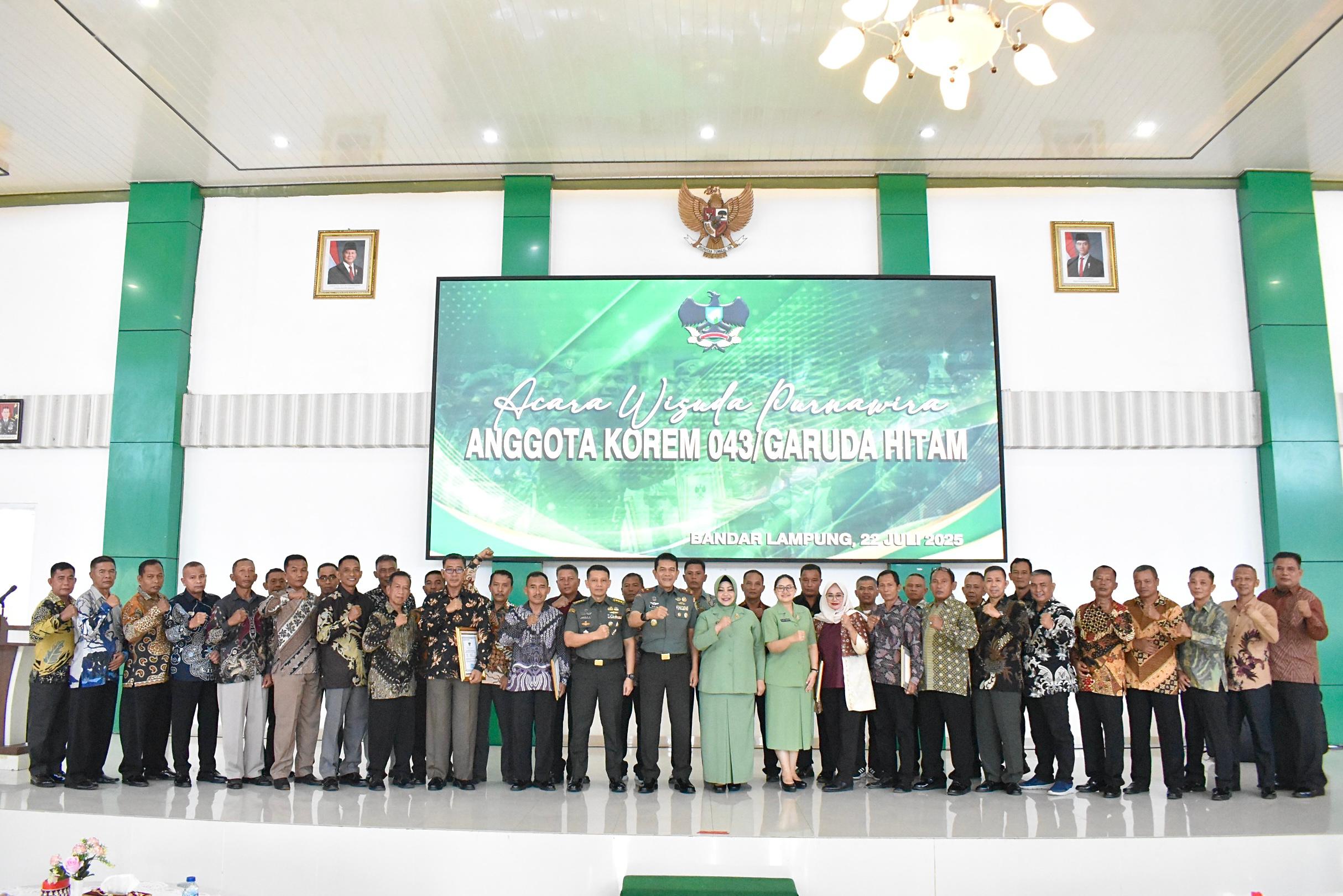 Kegiatan ini merupakan wujud penghormatan dan penghargaan dari satuan kepada 37 orang Purnawirawan – terdiri dari Perwira, Bintara, dan PNS – yang telah menyelesaikan masa tugasnya dan memasuki masa pensiun. Upacara berlangsung khidmat dengan prosesi penciuman Tunggul Duaja Korem 043/Gatam “Najaga Satya Eka Nagara” sebagai simbol pengabdian terakhir kepada satuan dan bangsa.