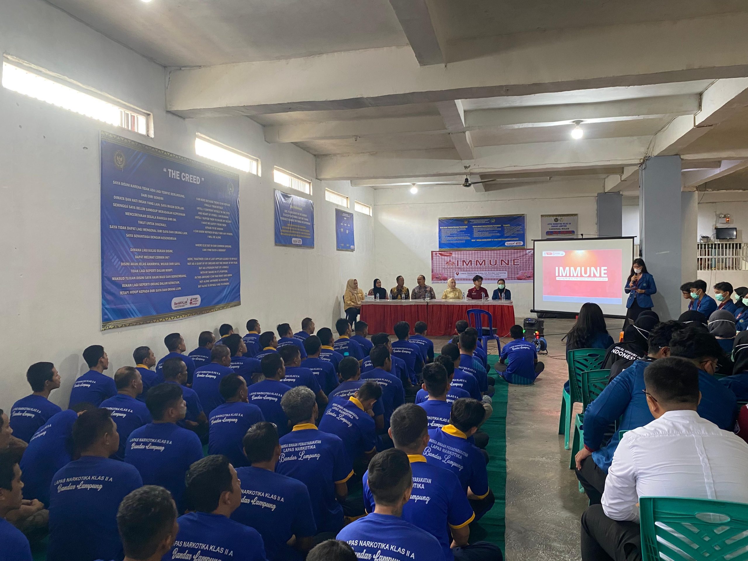 Bandar Lampung – Upaya peningkatan kesadaran dan pemahaman warga binaan mengenai HIV/AIDS kembali diperkuat melalui kegiatan IMMUNE (Inspiring Minds to Unite towards HIV/AIDS Eradication) yang dilaksanakan di Aula Rehabilitasi Lapas Narkotika Kelas IIA Bandar Lampung. Sabtu (06/09)