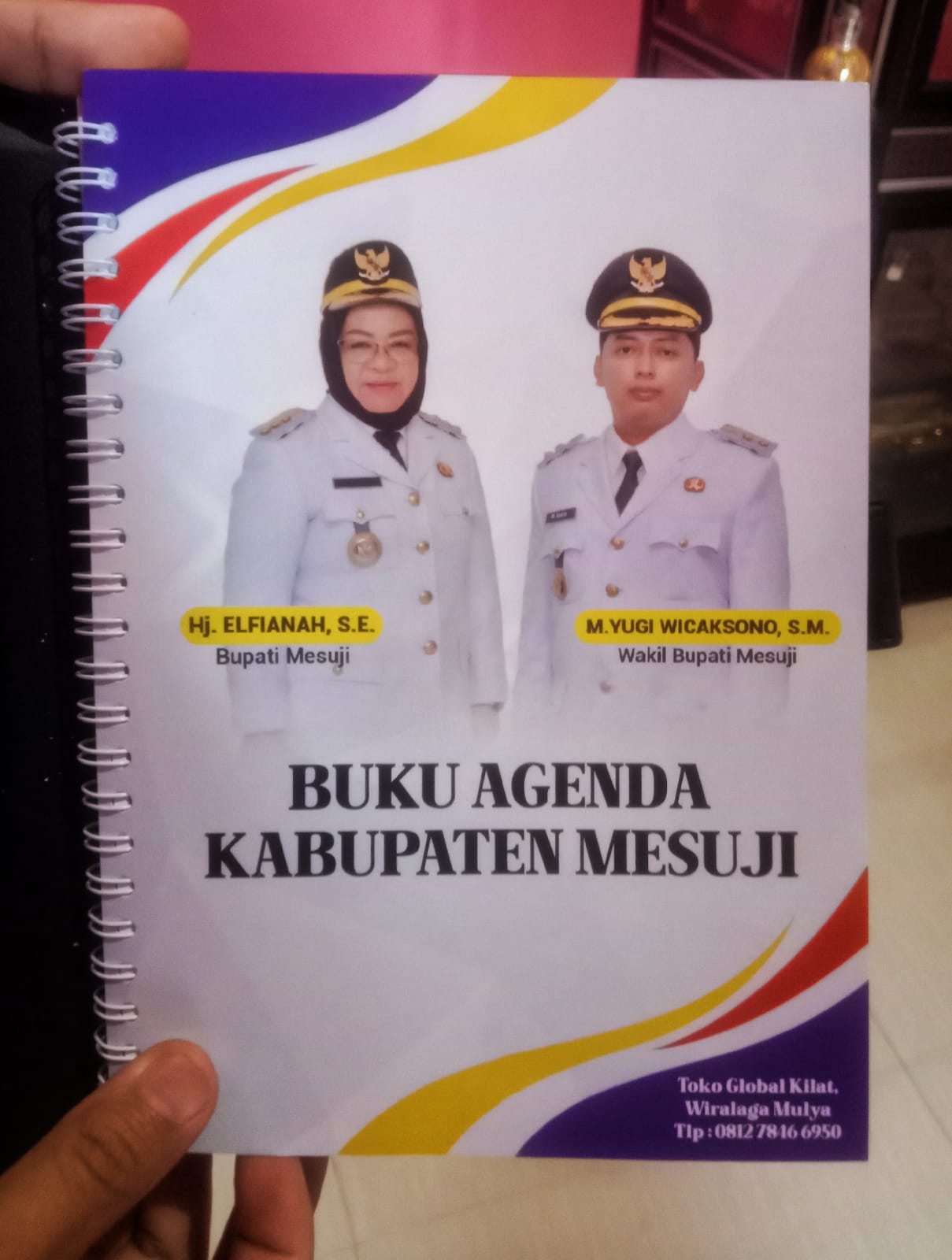 Buku agenda kerja bersampul hitam dengan gambar Bupati dan Wakil Bupati Mesuji tersebut diharapkan bisa bermanfaat bagi para dewan guru untuk mencatat dan mengatur jadwal dan tugas. Sehingga bisa membantu meningkatkan produktivitas serta dapat mengefisiensi manajemen dan waktu.