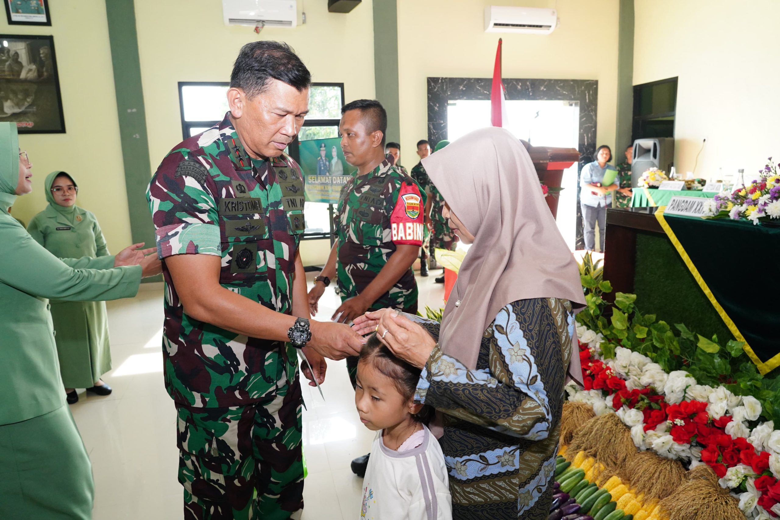 Pada kesempatan tersebut, Pangdam didampingi Ketua Persit KCK Daerah XXI/RI juga menyerahkan tali asih kepada Warakawuri, anggota Persit yang tengah sakit berat, serta anak berkebutuhan khusus.