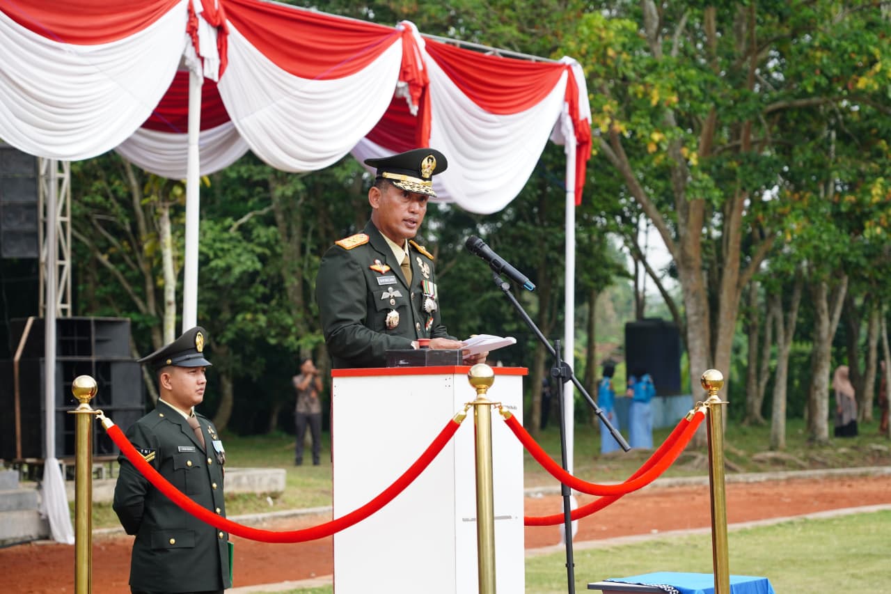 > “Hari ini kalian telah menyelesaikan serangkaian kegiatan pendidikan dasar selama tiga bulan dengan penuh semangat dan dedikasi. Pendidikan dasar ini bertujuan membentuk pribadi yang tangguh, berkarakter, serta memiliki ketahanan fisik dan mental yang kuat sebagai bekal dalam menempuh pendidikan selama tiga tahun ke depan,” ujar Danrem.