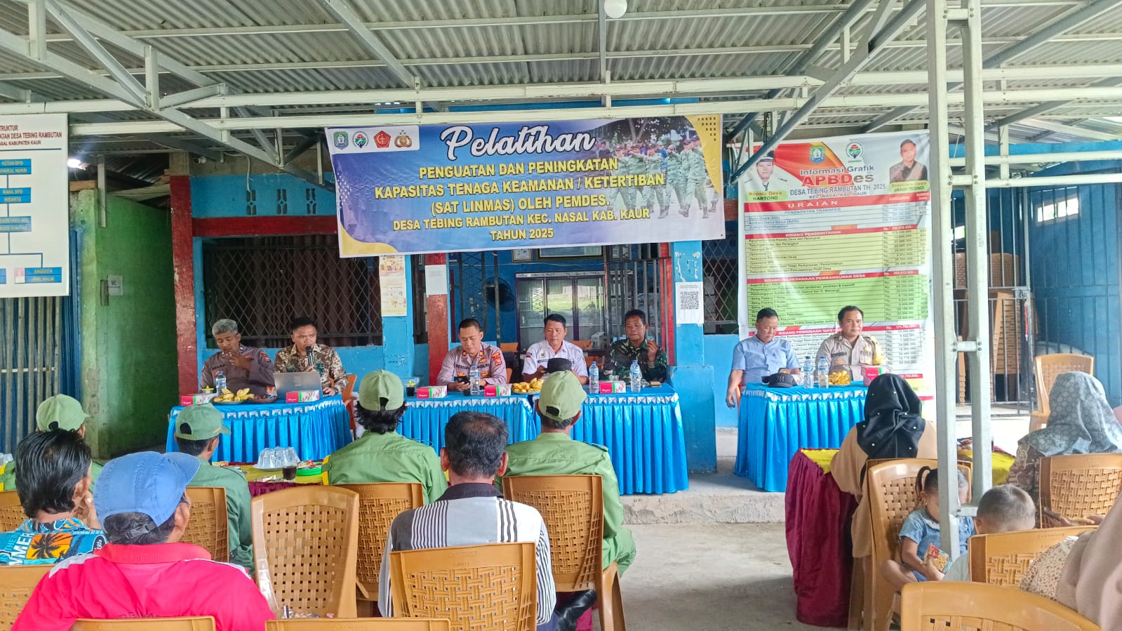 Berita24.co.id : Kaur —-  Untuk meningkatkan kualitas dan kapasitas tenaga keamanan/ketertiban Satuan Perlindungan Masyarakat (Satlinmas) Pemerintah Desa Tebing Rambutan Kecamatan Nasal Kabupaten Kaur menggelar pelatihan yang dilaksanakan di Balai Desa pada Jum’at 24 Oktober 2025.