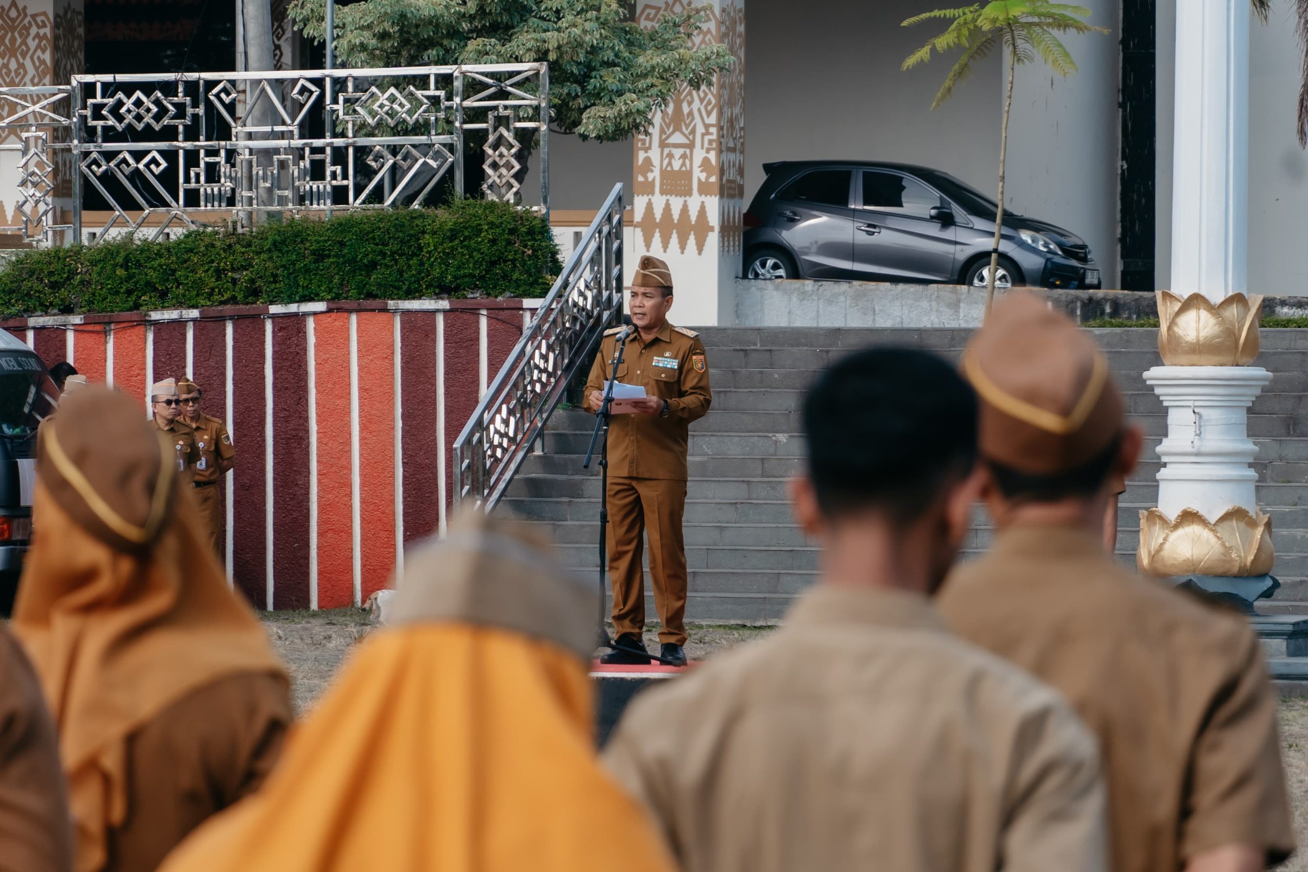Bandar Lampung — Gubernur Lampung diwakili Staf Ahli Bidang Pemerintah, Hukum dan Politik Achmad Saefulloh menjadi pembina apel mingguan di Lingkungan Sekretariat Daerah Provinsi Lampung, di Lapangan Korpri, Senin (03/11/2025).