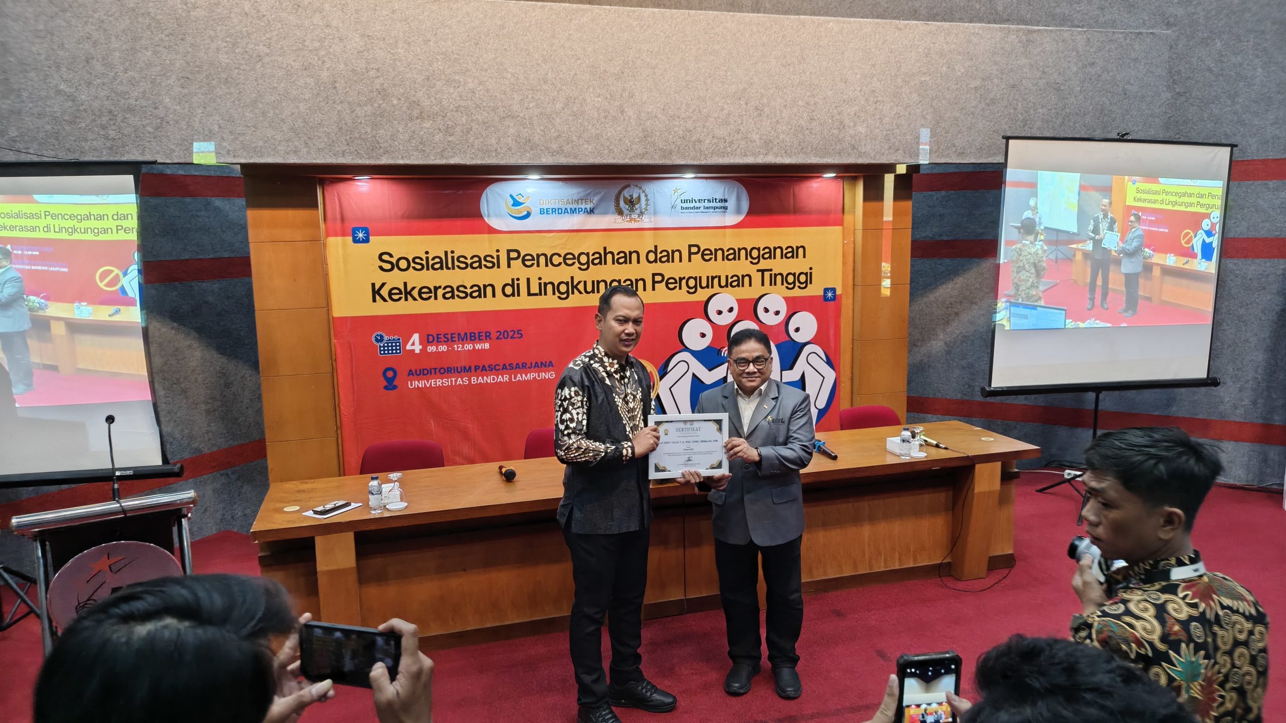 Bandar Lampung, 4 Desember 2025 – Auditorium Pascasarjana Universitas Bandar Lampung menjadi lokasi penyelenggaraan Sosialisasi Pencegahan dan Penanganan Kekerasan di Lingkungan Perguruan Tinggi, Kamis (4/12/2025). Kegiatan ini merupakan kolaborasi antara Komisi X DPR RI, Kemendiktisaintek, dan Universitas Bandar Lampung.