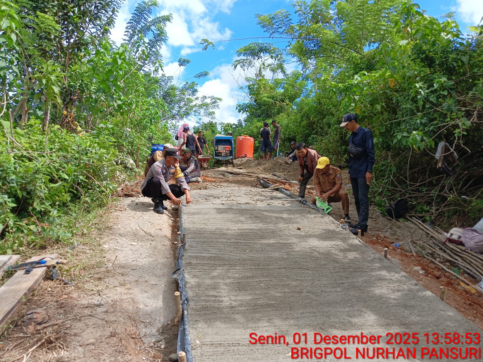 “Saya mengimbau kepada masyarakat untuk melepas rantai ban motornya ketika melintas di rabat beton ini. Kekuatan rantai ban dapat menimbulkan goresan di jalan yang lama-kelamaan bisa membesar dan merusak jalan hingga menjadi lubang,” tandas Tardian Sapri selaku kepala desa.. (sy/san)