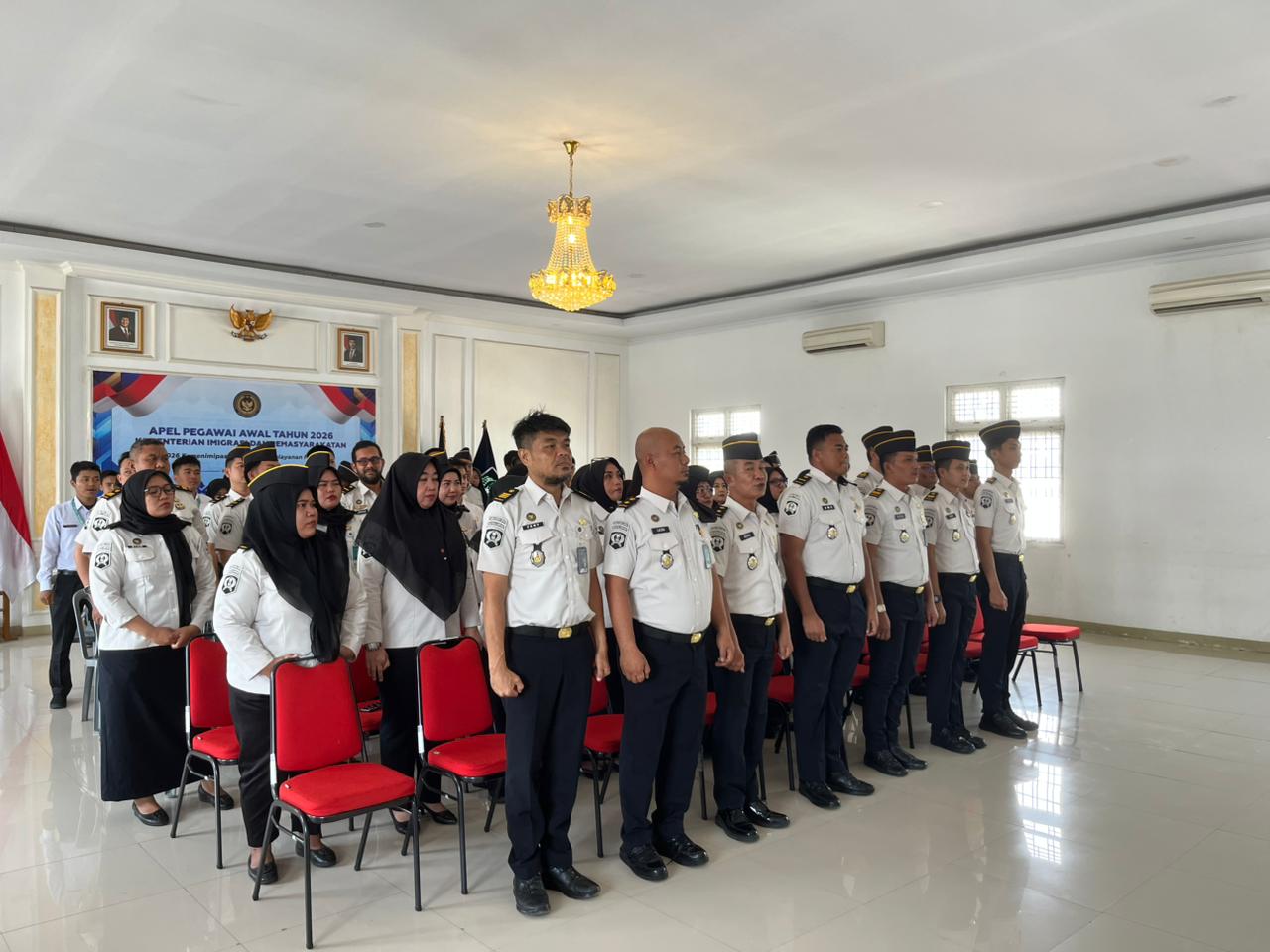 Kegiatan dilaksanakan di Aula Rubal dan diikuti oleh Pejabat Struktural, seluruh Pegawai, serta Peserta Magang. Apel awal tahun ini dilaksanakan secara daring dengan menyaksikan siaran langsung melalui kanal YouTube resmi kegiatan Apel Awal Tahun dan Penandatanganan Perjanjian Kerja Kementerian Imigrasi dan Pemasyarakatan.