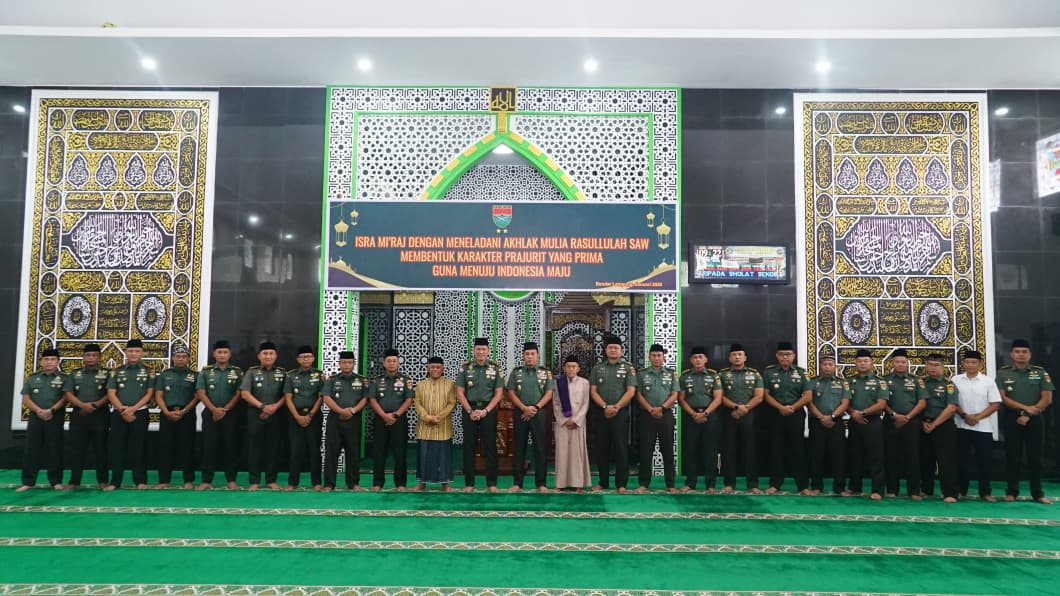 Bandar Lampung – Panglima Komando Daerah Militer (Pangdam) XXI/ Radin Inten, Mayor Jenderal (Mayjen) TNI Kristomei Sianturi, S.Sos., M.Si., (Han), melaksanakan kegiatan peringatan Hari Isra Mi’raj Nabi Muhammad SAW 1447 H/ 2026 M yang berlangsung khidmat di Masjid Al – Ikhlas Makodam XXI/Radin Inten, pada hari Selasa (27/01/2026)