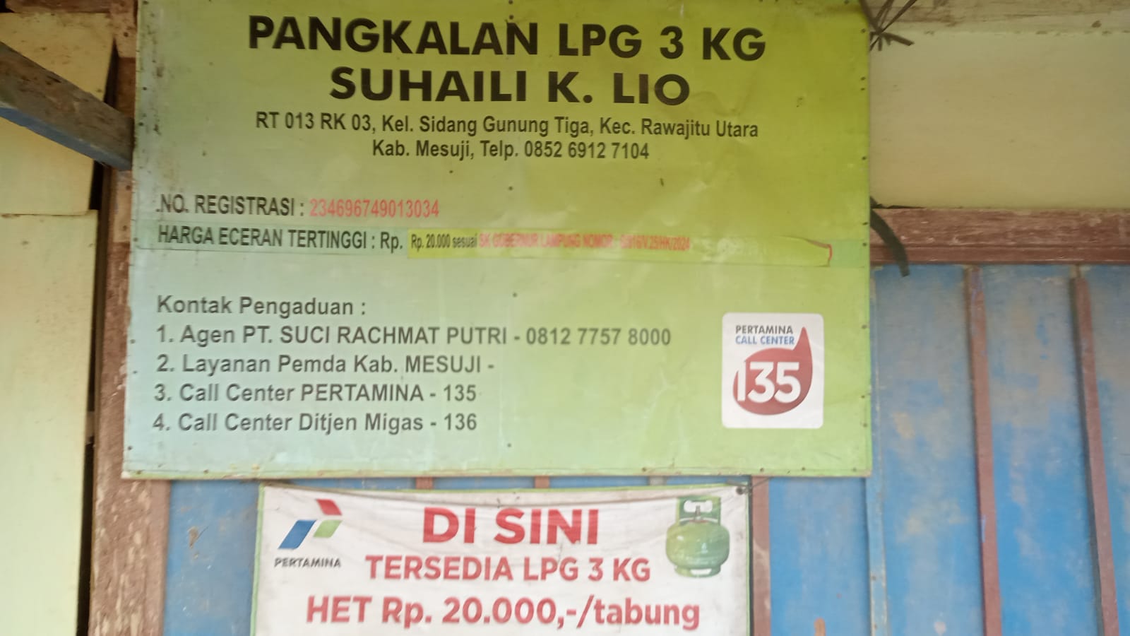 Berita24.co.id : Mesuji – Seorang oknum pengelola pangkalan LPG 3 kilogram bersubsidi milik Suhaili, yang berlokasi di Desa Pangung Jaya, Kecamatan Rawa Jitu Utara, Kabupaten Mesuji, diduga menjual gas subsidi di atas Harga Eceran Tertinggi (HET) serta tidak memprioritaskan warga sekitar sebagai penerima manfaat.