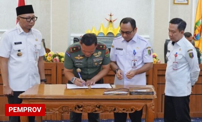 Penandatanganan dilakulan oleh Plt. Badan Pengelolaan Keuangan dan Aset Daerah (BPKAD) Provinsi Lampung, Nurul Fajri, Pangdam XXI/Radin Inten Mayjen Kristomei Sianturi, Danrem 043/Garuda Hitam Brigjen Haryantana dan perwakilan dari unsur TNI dan Polri.