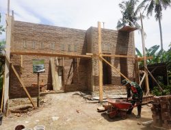 Sementara itu, rumah Ibu Yusmawati dan Bapak Heri S. masih dalam proses penyusunan bata merah sebagai bagian awal pembentukan struktur hunian yang lebih layak.