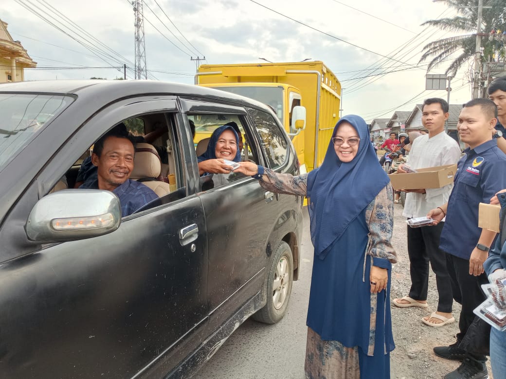Berita24.co.id : Mesuji —-Dalam rangka menyemarakkan bulan suci Ramadan yang penuh berkah, Bupati Mesuji Elfianah bersama jajaran pengurus Partai NasDem turun langsung ke jalan untuk membagikan takjil kepada para pengguna jalan.Kamis ( 05/03/26)