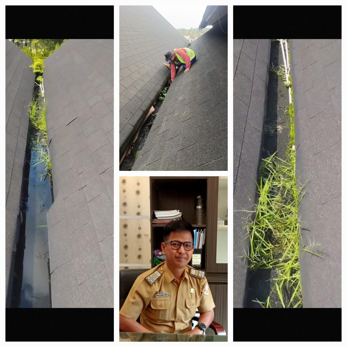NURUL AZMI, ST.MT mengatakan Bahwa beberapa hari yang lalu di daerah kabupaten setempat pasca terjadinya intensitas hujan deras menyebabkan talang air gedung sesat agung tersumbat kotoran lumut