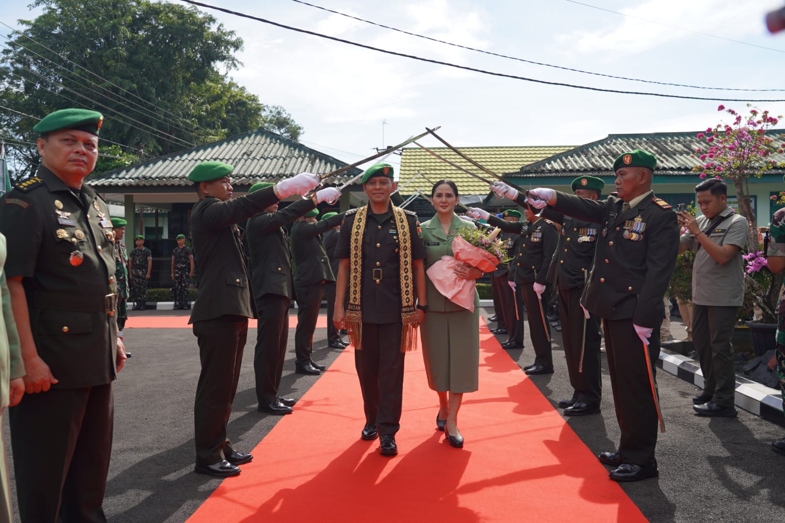 Kedatangan perwira menengah TNI AD tersebut didampingi oleh istri, Ny. Indah Roli Dewanto, yang juga akan mengemban amanah sebagai Wakil Ketua Persit Kartika Chandra Kirana Koorcab Rem 043. Penyambutan dilakukan oleh jajaran perwira dan personel Korem 043/Gatam sebagai bagian dari tradisi satuan sekaligus bentuk penghormatan kepada pejabat baru sebelum pelaksanaan serah terima jabatan (sertijab) secara resmi.